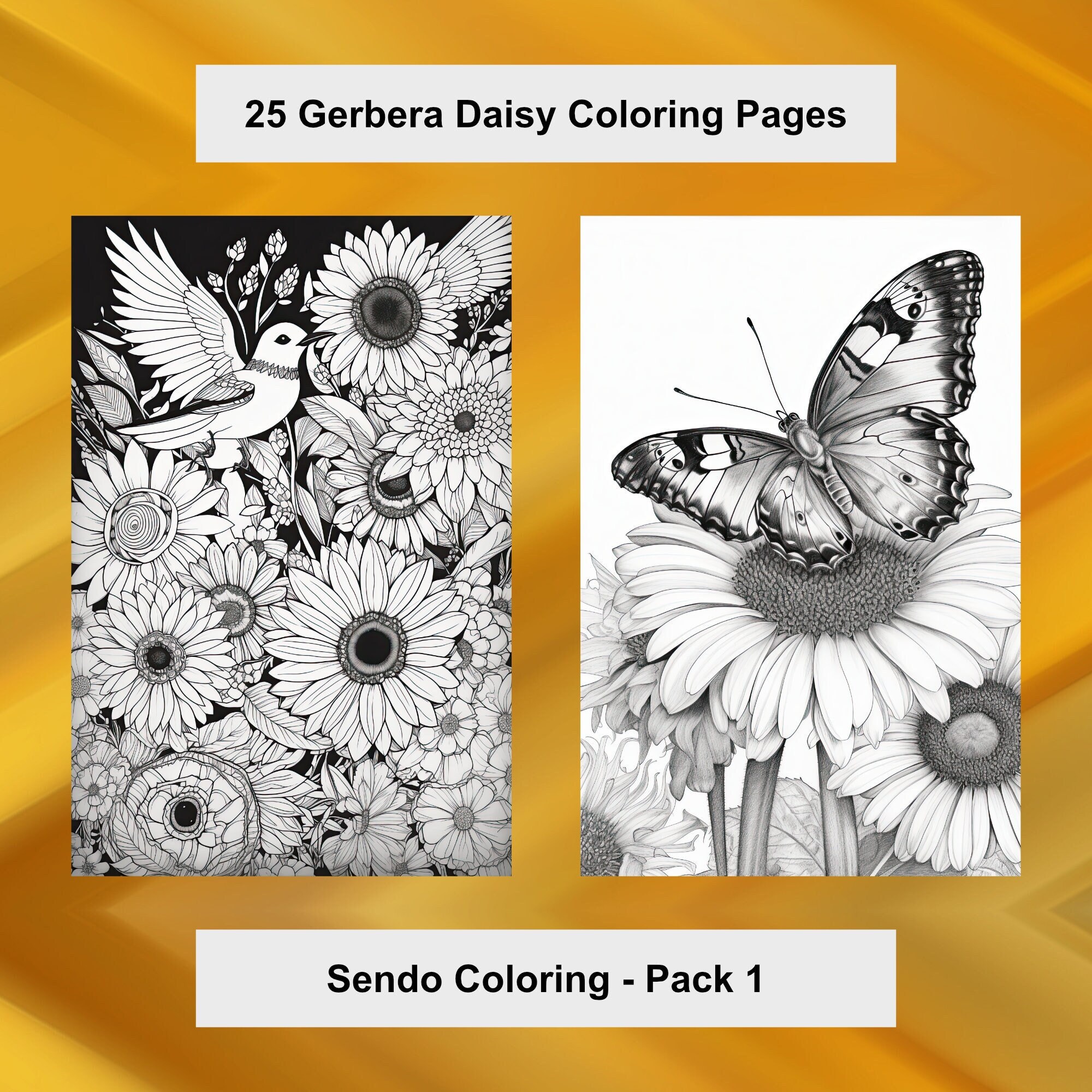 Gerbera Daisy Flower Coloring Pages 25 Rose Coloring Etsy